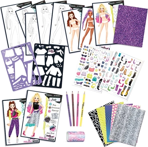 Objevte svět módy s kreativní sadou Projekt Móda – párty stylizace. V balení najdete skutečné krejčovské materiály různých textur a stylů a kvalitní doplňky, díky nimž si vytvoříte vlastní lookbook. Ať už preferujete glamour, casual nebo rockový styl, tahle sada vám pomůže vyjádřit osobnost a kreativitu.