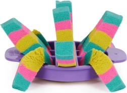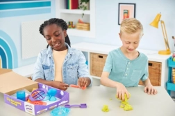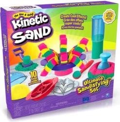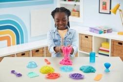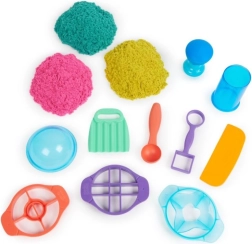 Ultimátní sada pro milovníky kinetického písku přináší 900 g písku ve třech barvách (růžová, žlutá, modrozelená) a 10 šikovných nástrojů včetně 3 exkluzivních řezacích pomůcek pro ohromující efekty. Děti mohou písek míchat, vrstvit, krájet, lisovat a tvarovat podle fantazie – hra je návyková, uklidňující a bezpečná.