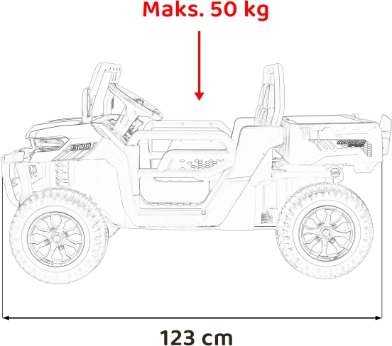 Díky čtyřem výkonným motorům 45W je autíčko schopno zvládnout různé terény a poskytuje nezapomenutelnou jízdu.