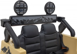 Velká EVA kola a zadní odpružení zvládnou i nerovný terén, pohodlné sedadlo z ekokůže s bezpečnostními pásy poskytne stabilitu a pohodlí. Multimediální panel s MP3/USB/AUX/Bluetooth a integrovanými melodiemi se postará o zábavu na každé vyjížďce.
