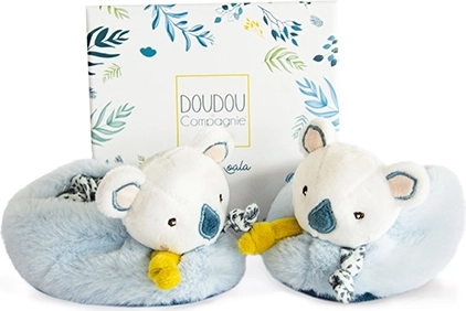 Tato dárková sada obsahuje nádherné plyšové botičky s motivem koaly Yoca, navržené speciálně pro novorozence ve věku 0-6 měsíců. Botičky jsou vybaveny integrovanými chrastítky, která nejen že udržují nožičky v teple, ale také podporují hrubou motoriku dítěte a zábavu.