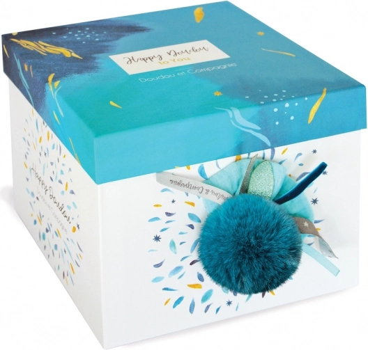 Měkoučký plyšový králíček DOUDOU o výšce 25 cm s tmavě modrou bambulkou je ideální společník pro miminka i větší děti. Nabízí uklidňující dotek, prémiové materiály, bezpečnost dle norem CE a snadnou údržbu. Skvělé jako dárek v elegantní krabičce.