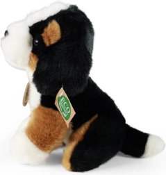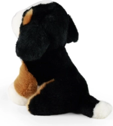 Tento plyšový pes je navržen s detailem typickým pro bernského salašnického psa, s mixem černé, hnědé a bílé barvy.