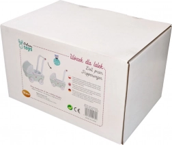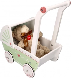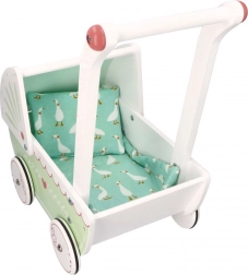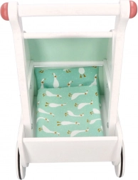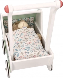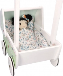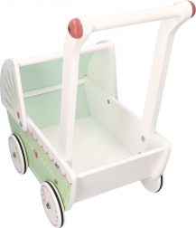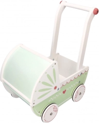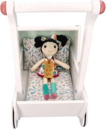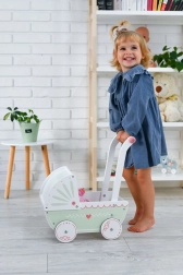 Kočárek má robustní dřevěnou konstrukci, která zajišťuje stabilitu i bezpečí při hře. Ideální pro malé začínající chodce.