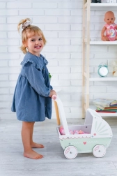 Tento dřevěný kočárek pro panenky je ideální hračkou pro děti, které milují role-playing a starání se o své panenky. Vyroben z kvalitního dřeva s krásným designem, poskytuje bezpečnou a zábavnou hru.
