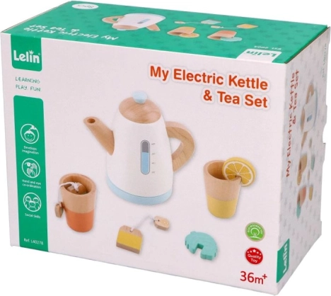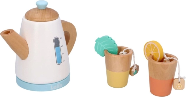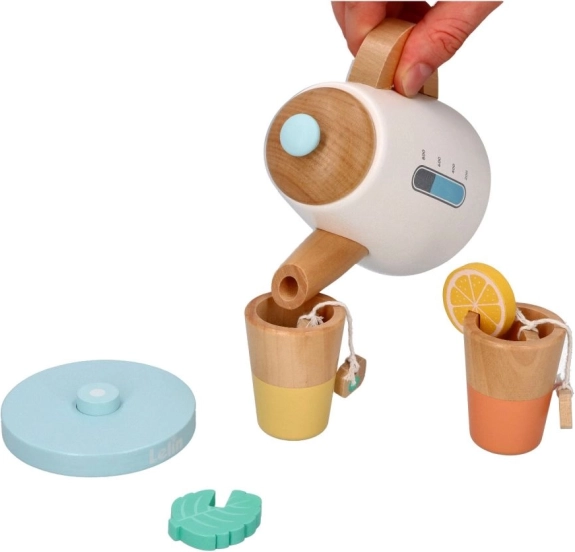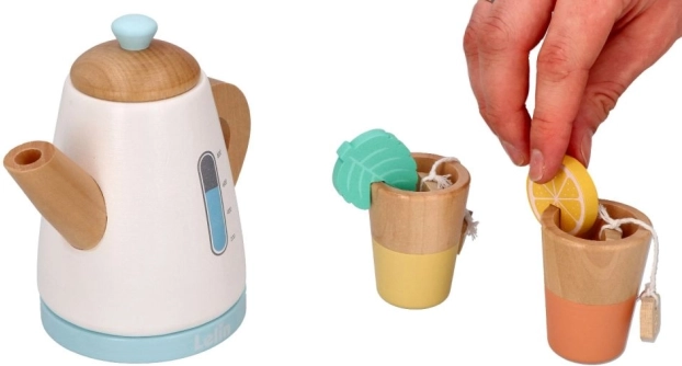 Dřevěný čajový set s konvicí a hrníčky nabízí dětem možnost ponořit se do světa představivosti prostřednictvím hry na čajový dýchánek. S dřevěnou konvicí, hrníčky a realistickými detaily, jako jsou plátky citronu a čajové sáčky, tento set zajistí nespočet hodin zábavy.