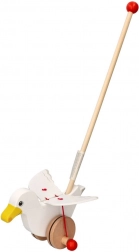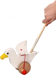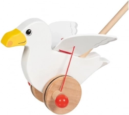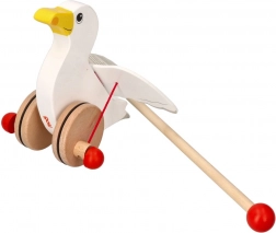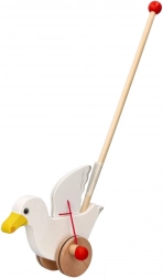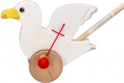 Roztomilá dřevěná hračka k tlačení racek Jonas motivuje děti k chůzi – při jízdě mávají křídla, zatímco kolečka s gumovými pásky šetří podlahu. Ideální pro rozvoj hrubé motoriky a rovnováhy dětí od 18 měsíců.