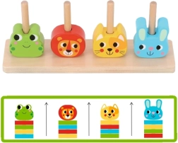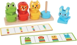 Tato roztomilá stohovací hra přináší zábavu i učení v jednom. Děti mohou libovolně kombinovat barevné dílky a vytvářet své oblíbené zvířecí postavičky nebo se řídit přiloženými kartičkami s předlohami. Kvalitní zpracování z FSC® dřeva zajišťuje odolnost a bezpečnost při každodenním hraní.