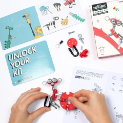 Stavebnice The OffBits OpiceBit přináší hravou cestu k učení. Z barevných součástek, šroubků a tvarovaných dílů si děti sestaví model opice a následně mohou experimentovat s vlastními konstrukcemi. V balení je i praktické nářadí, takže mohou začít tvořit hned po otevření krabičky.