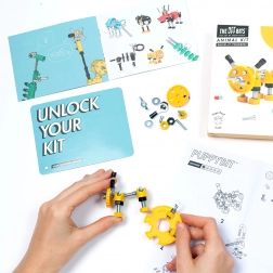 Objevte stavebnici The OffBits PuppyBit – rozkošné mechanické štěně pro děti od 6 let. Sada plná kovových a plastových dílů, šroubků a univerzálního nástroje podporuje kreativitu, jemnou motoriku a logické myšlení. Postavte základní model a vymýšlejte další originální výtvory – kompatibilní i s běžnými předměty z domácnosti.