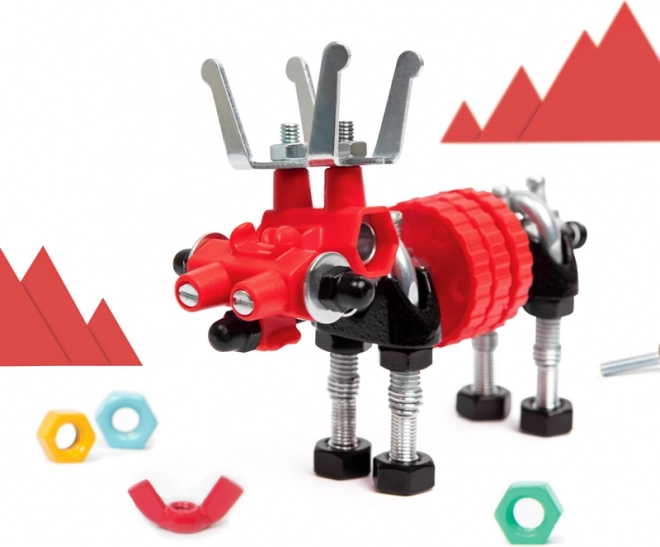 Barevné šroubky, matice a speciální konektory podporují přesnost, trpělivost a radost z objevování konstrukcí.
