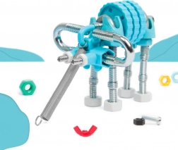 Odolné kovové šrouby, matice a pružiny v kombinaci s barevnými plastovými konektory umožňují stabilní, znovu rozebíratelné modely.