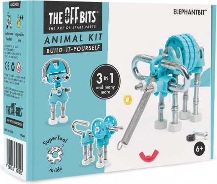 Stavebnice THE OFFBITS ElephantBit přináší zábavu i učení v jednom. Díky chytré kombinaci šroubků, matic, U-boltů, pružin a tvarovaných plastových konektorů mohou děti postavit Slona, Psa nebo Robota – a pak zkoušet vlastní originální konstrukce. Modulární systém vede k trpělivosti, přesnosti a podporuje prostorovou představivost.