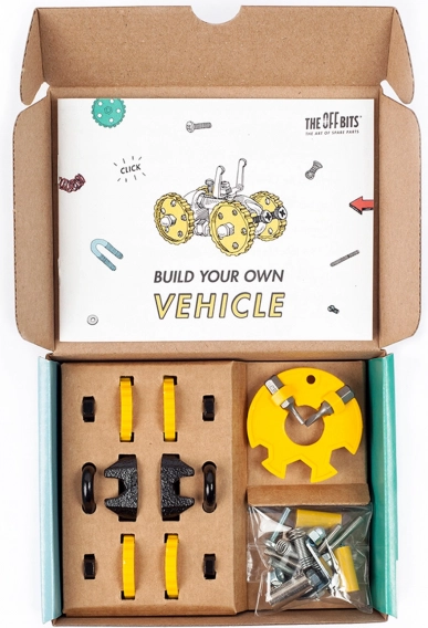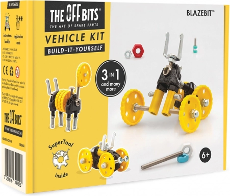 OFFBITS BlazeBit je originální stavebnice inspirovaná re-use kulturou, která promění šroubky, kolečka a chytré konektory v pohyblivé modely. Postavte BlazeBit, MotorBit, AnimalBit nebo si vymyslete vlastní stroj – fantazii se meze nekladou.