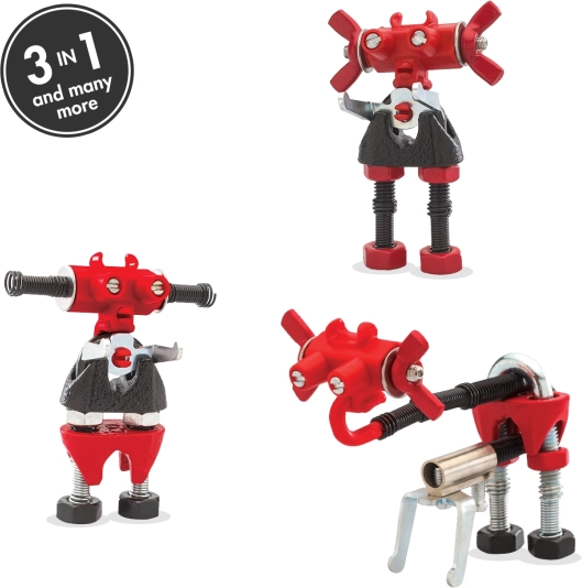 Díly lze kreativně kombinovat s kartonem, šroubky a dalšími předměty každodenní potřeby, takže možnosti stavění jsou prakticky neomezené. S přiloženým multifunkčním nástrojem probíhá montáž snadno a bezpečně – ideální pro začínající konstruktéry.