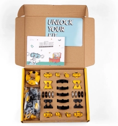 LoaderBit je parádní buldozer pro vašeho robota OFFBITS. Díky chytrým spojům, sadě kol a více než 150 dílkům snadno přestavíte model podle své fantazie. Vytvořte 3 základní varianty nebo si vymyslete vlastní unikátní stroje.
