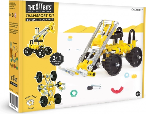 Objevte stavebnici OFFBITS LoaderBit – největší a nejsilnější stroj v parku! S více než 150 díly postavíte buldozer, robota na kolečkách nebo vozítko s hákem. Stavebnice podporuje kreativitu, jemnou motoriku a logické myšlení a je skvěle kompatibilní s předměty denní potřeby pro nekonečné možnosti stavění.