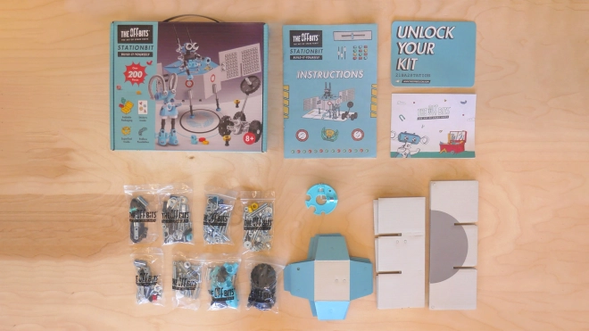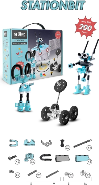 Proměňte šroubky, matice a tvarované díly v působivou vesmírnou stanici. OffBits StationBit přináší hravé STEM učení – děti se zábavnou formou seznamují s principy vědy, technologií, inženýrství, umění a matematiky. Díky více než 200 barevným komponentům, samolepkám a chytrému balení bez odpadu, které se stává součástí hry, vzniká bohatý svět tvoření a objevování.
