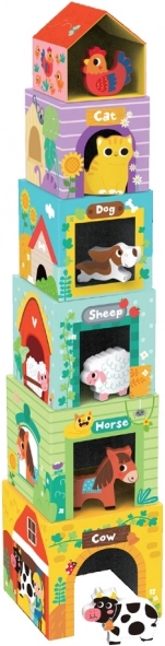 Kostky se zvířátky Farma od 2Kids Toys jsou navrženy pro učení a zábavu dětí. Šest kostek tvoří nejen skládací věž, ale také malinké domečky pro zvířátka. Každé zvířátko má své místečko a učí děti, jak správně stavět a poznávat čísla. Barvy a tvary rozvíjejí rozpoznávací schopnosti a motoriku.