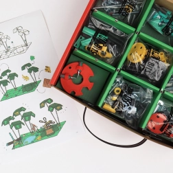 Ponořte se do světa kreativity se stavebnicí JungleBit od OffBits. Tato sada umožňuje vytvoření čtyř základních modelů: BeeBit, MonkeyBit a DragonflyBit, ale tím to zdaleka nekončí! Pomocí této sady můžete postavit různé další jedinečné výtvory a experimentovat s rozmanitými materiály z domácnosti. Stavebnice podporuje rozvoj dovedností v oblasti vědy, technologie, inženýrství, umění a matematiky, zatímco zároveň pomáhá zlepšit jemnou motoriku a logické myšlení u dětí.