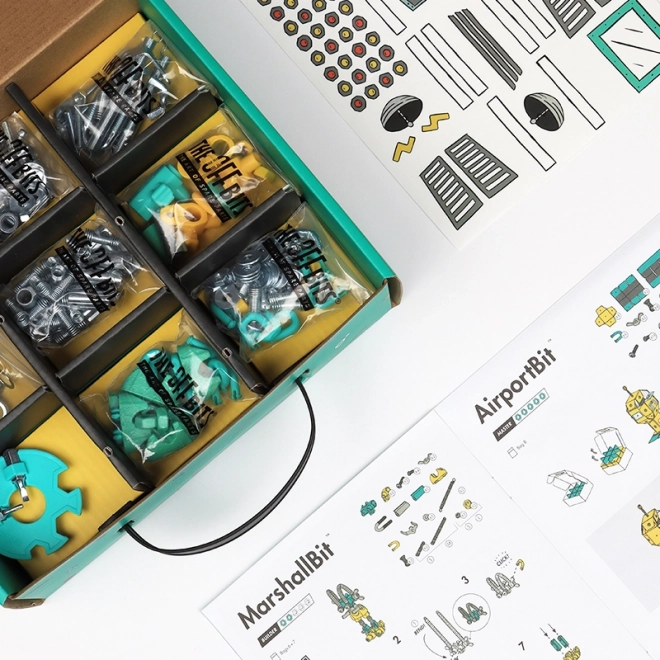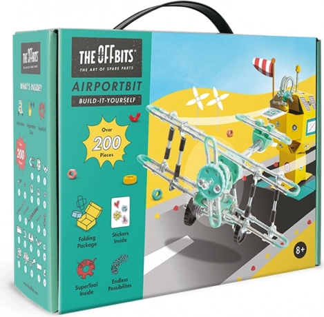 Objevte The OffBits AirportBit, stavebnici, která podporuje rozvoj jemné motoriky, prostorové představivosti a kreativity. Sedět nebudete; tato sada nabízí dynamickou hru díky přiloženému nářadí a stavebním dílcům.