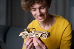 Udělejte si radost ikonickým modelem roadsteru z poloviny 20. století. UGEARS Rapid Mouse se skládá z 226 dílů a po sestavení nabídne působivé mechanické funkce: nátah pružinového motoru až na šest kliknutí ráčnou, možnost zpětného natažení na rovném povrchu a ovladatelnost díky nastavitelným předním kolům. Gumové pneumatiky zajišťují skvělou trakci a snadnou výměnu.