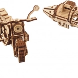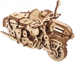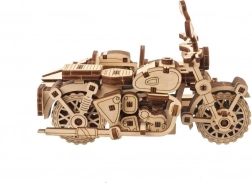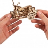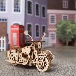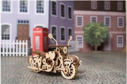 Sestavte a rozhýbejte motorku díky chytré konstrukci převodů a gumičkových prvků – vše čistě, jen ze dřeva.