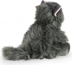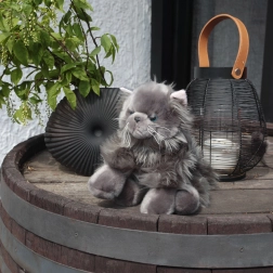 Dlouhý, měkoučký šedý plyš, modré oči a růžová ouška dělají z kočky věrného mazlíčka i krásnou dekoraci.