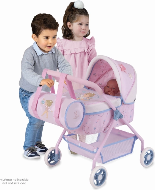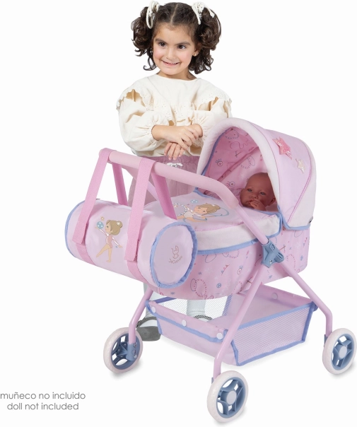 Roztomilý kočárek pro panenky z kolekce GALA přináší elegantní španělský design, kvalitní zpracování a praktické řešení pro každodenní hraní. Díky nízké rukojeti a lehké konstrukci se s ním dětem velmi snadno jezdí doma i venku.