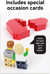 Objevte kouzlo legendárních minifigurek, které baví svět už desítky let. Stylová krabička s víkem ukrývá pestrou kolekci vtipných scén, hlášek a slovních hříček — ideální pro rychlé vzkazy, přání nebo milé překvapení do balíčku. Karty potěší každého fanouška LEGO bez ohledu na věk.