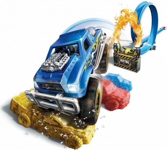 Tato kaskadérská dráha je navržena pro maximální zábavu a vzrušující kousky. Vystřelovač poskytuje silný impulz, který pošle kovové autíčko do smyčky a přes rampu, kde předvede odvážné skoky. Ideální pro fanoušky rychlosti a kreativního hraní.