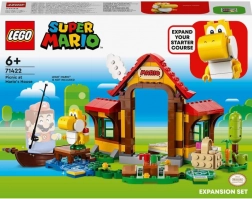 LEGO Super Mario Piknik v Marioho domě rozšiřující set (71422) nabízí dětem možnost postavit detailní úroveň a pořádně si užít zábavu při sbírání mincí. Pozdravte se s Žlutým Yoshim, odpočiňte si v posteli, vychutnejte si sušenky z piknikového koše, zalévejte zeleninu na zahradě, zahrajte si hokej nebo lovte ryby z loďky. Tento set vyžaduje startovací sadu 71360, 71387 nebo 71403 pro interaktivní hru.