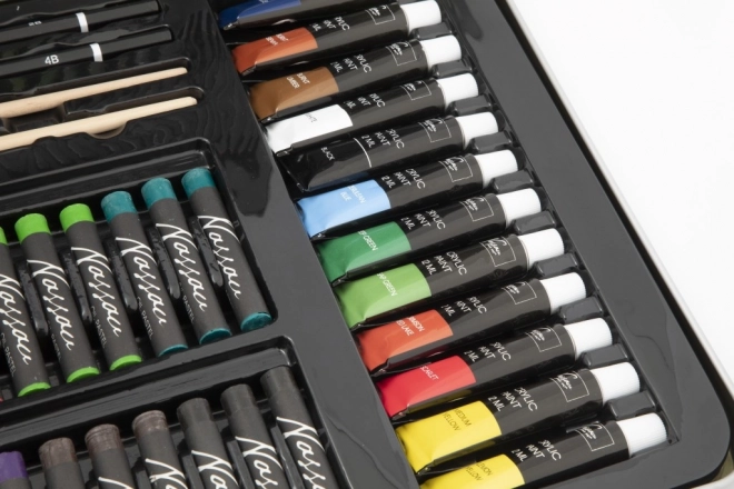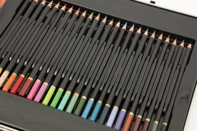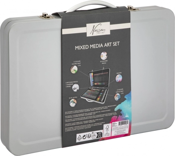 Skvělá volba pro umělce, tato sada výtvarných potřeb je uložena v elegantním plechovém kufříku, který obsahuje vše, co potřebujete pro svou kreativitu na cestách.