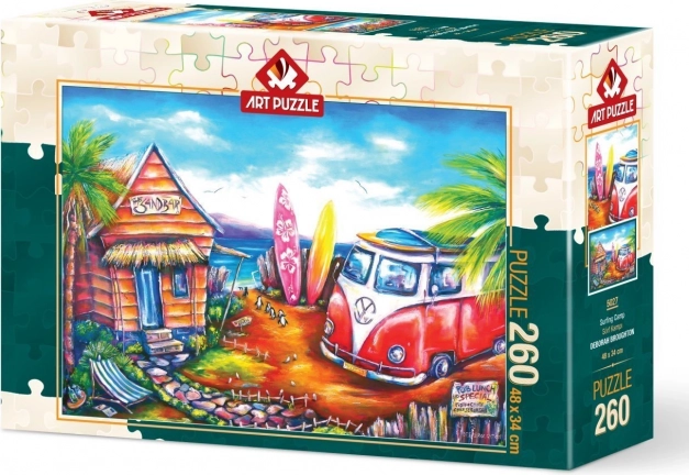 Objevte pohodovou atmosféru letního dne u moře se skládačkou Surfařský kemp. Puzzle od ART PUZZLE s 260 dílky je ideální volbou pro chvíle relaxu a rodinné skládání, kdy si vyčistíte hlavu a potěšíte se hotovým obrázkem o rozměrech cca 48 × 34 cm.
