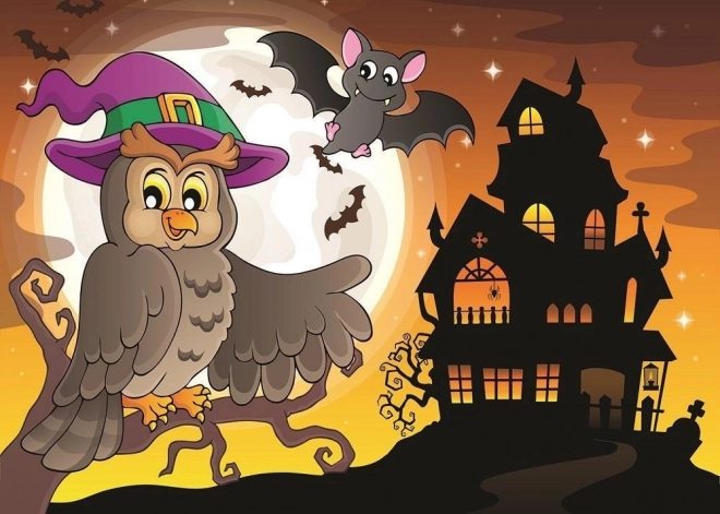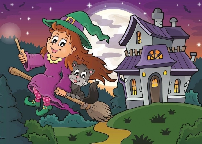 Objevte svět fantazie se sadou dvou puzzle s motivy sovy a čarodějnice. Každé puzzle má 100 dílků a po složení měří přibližně 34 × 24 cm – ideální velikost pro dětský stůl i rámování.