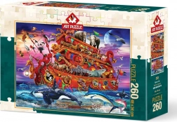 Užijte si chvíle pohody s motivem Noemovy archy, který potěší milovníky zvířat i rodinného skládání. Díky kvalitnímu zpracování a přesným výsekům do sebe dílky skvěle zapadají a výsledný obraz působí živě a barevně. Puzzle s 260 dílky je skvělou volbou pro trénink soustředění, trpělivosti a jemné motoriky.