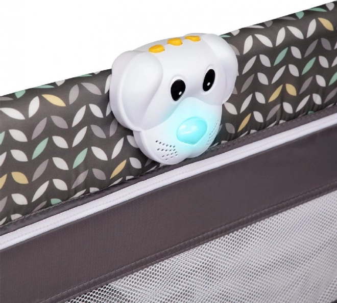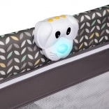 Boční vstup na zip umožní dítěti bezpečně vlézt a vylézt, síťované bočnice zajišťují proudění vzduchu a přehled. Stabilní rám bez ostrých hran a systém LockGuard chrání před samovolným složením. Součástí jsou i zábavné prvky jako melodie a interaktivní hračka, madla pro trénink vstávání a síť proti hmyzu pro klidný spánek.