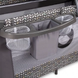 - Přebalovací pult, postranní organizér (3 kapsy), síť proti hmyzu, madla pro učení stoupání, melodie a interaktivní hračka
