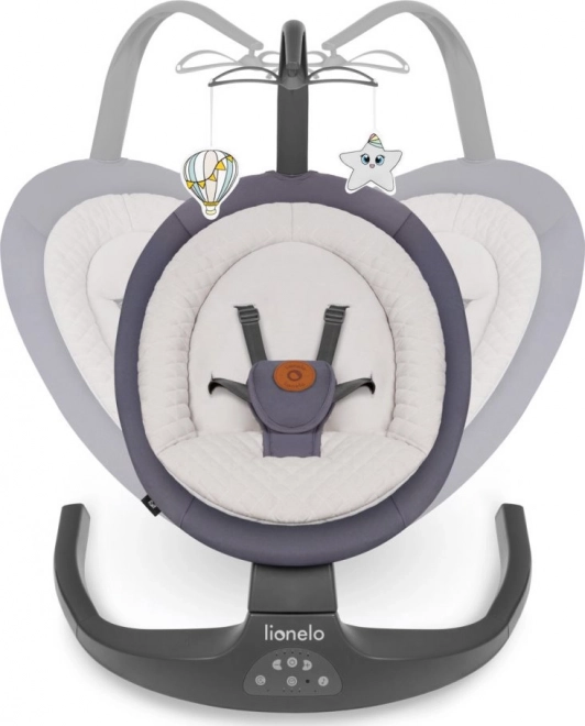 Praktické kojenecké lehátko 2v1 Ralf od značky LIONELO nabízí dětem pohodlné místo pro hraní, odpočinek i spánek. Díky funkci houpání s automatickou detekcí pohybu, 5 rychlostmi a časovačem (8/15/30 min) se miminko snadno uklidní. Lehátek disponuje profilovaným sedadlem s měkkým polštářkem, 12 melodiemi s regulací hlasitosti, dálkovým ovládáním a odnímatelnou hrazdičkou se dvěma hračkami. Pro bezpečí nechybí 5bodové pásy a protiskluzové krytky.