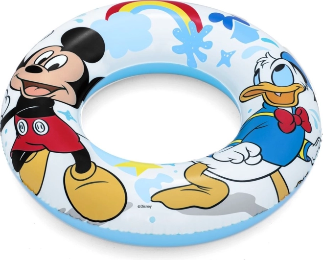 Nafukovací kruh je ozdoben motivy Mickeyho Mouse a Kačera Donalda, což přidává zábavu a láká děti ke koupání.