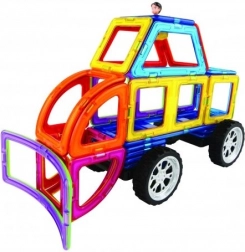 Kolečka, speciální tvary a figurky umožní postavit auta, náklaďáky i lodě. Děti rozvíjejí motoriku a prostorové myšlení hravou formou.
