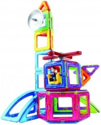 Velká sada MAGFORMERS Mastermind přináší široký výběr základních i speciálních dílů včetně oken, balkonů, výplní, stromů a figurek. Díky kombinaci trojúhelníků, čtverců, pěti- i šestiúhelníků, kosočtverců či lichoběžníků postavíte vše od vozidel až po působivé architektonické stavby.