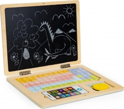 Dřevěný laptop ECO TOYS je ideálním nástrojem pro malé umělce a zvědavé myslitele. Tento multifunkční nástroj nabízí jak černou tabuli na psaní křídou a kreslení, tak magnetickou tabuli pro skladbu slov a čísel. Je to skvělý způsob, jak v dětech rozvíjet kreativitu a zručnost při učení se základům čtení a matematiky.