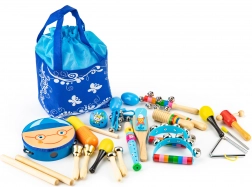 Tato bohatá sada hudebních nástrojů je skvělou volbou pro první muzikantské krůčky. Od tamburíny přes maracas až po flétnu – děti si procvičí koordinaci, posílí sluchové vnímání a užijí si spoustu zábavy. Dřevěné provedení zajišťuje pevnost a dlouhou životnost, zatímco pestré zvuky podporují rozvoj rytmu a tvořivost.