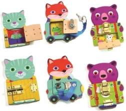 Objevte zábavnou sadu DJECO, která dětem pomáhá rozvíjet jemnou motoriku a každodenní dovednosti. Tři roztomilá zvířátka s různými typy zámků podněcují zvídavost, koordinaci rukou a trpělivost. Ideální didaktická hračka pro předškoláky od 3 let. Rozvoj motoriky, 3 druhy zámků a hravé učení v jednom.