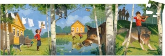 Objevte poetický svět pohádky Petr a vlk s panoramatickým puzzle DJECO. Díky 50 pevným dílkům si děti procvičí jemnou motoriku, logické myšlení a trpělivost, zatímco si užijí zábavné skládání krásné ilustrace. Hotové puzzle měří přibližně 62 × 20 cm a skvěle se hodí na vystavení.