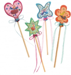 Vytvořte si vlastní kouzelnou hůlku s kreativní sadou od Djeco. Tato zábavná aktivita probouzí tvořivost, rozvíjí jemnou motoriku a zabaví děti na dlouhé hodiny. V balení najdete vše potřebné k výrobě čtyř různých vílích hůlek, které dozdobíte stuhami a propisovacími obrázky. Vhodné pro děti od 5 let.