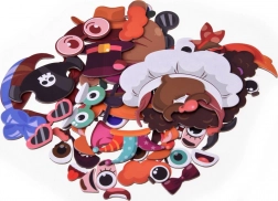 Oči, rty, brýle, klobouky i vlásky – vše připravené k tvoření veselých obličejů a výrazů.