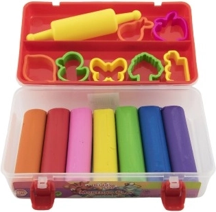 Sada modelín NARA potěší každé dítě, které miluje tvoření. Obsahuje 7 ks barevných modelín, 7 ks vykrajovátek a váleček v praktickém boxu.