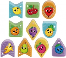 Interaktivní prvek v podobě stopky přináší nové výzvy a obměny hry. Vkládání a vytahování dílků rozvíjí jemnou motoriku, koordinaci ruka–oko i logické uvažování, zatímco motivy ovoce podporují rozšiřování slovní zásoby a poznávání tvarů.